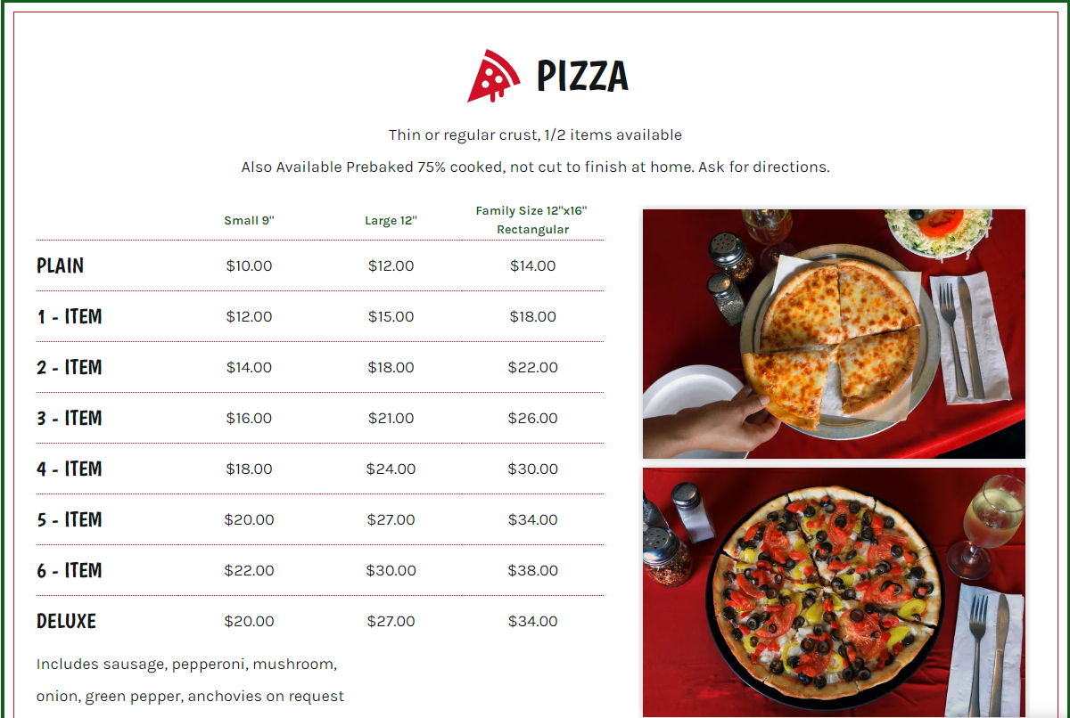 - Pizzas: Enjoy personal favorites like pepperoni and anchovies, perfect for any palate.