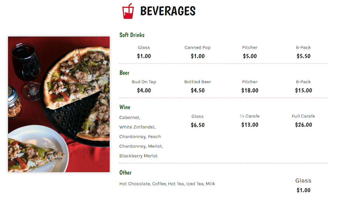 - Wine: Complement your meal with selections like White Zinfandel or Chardonnay.