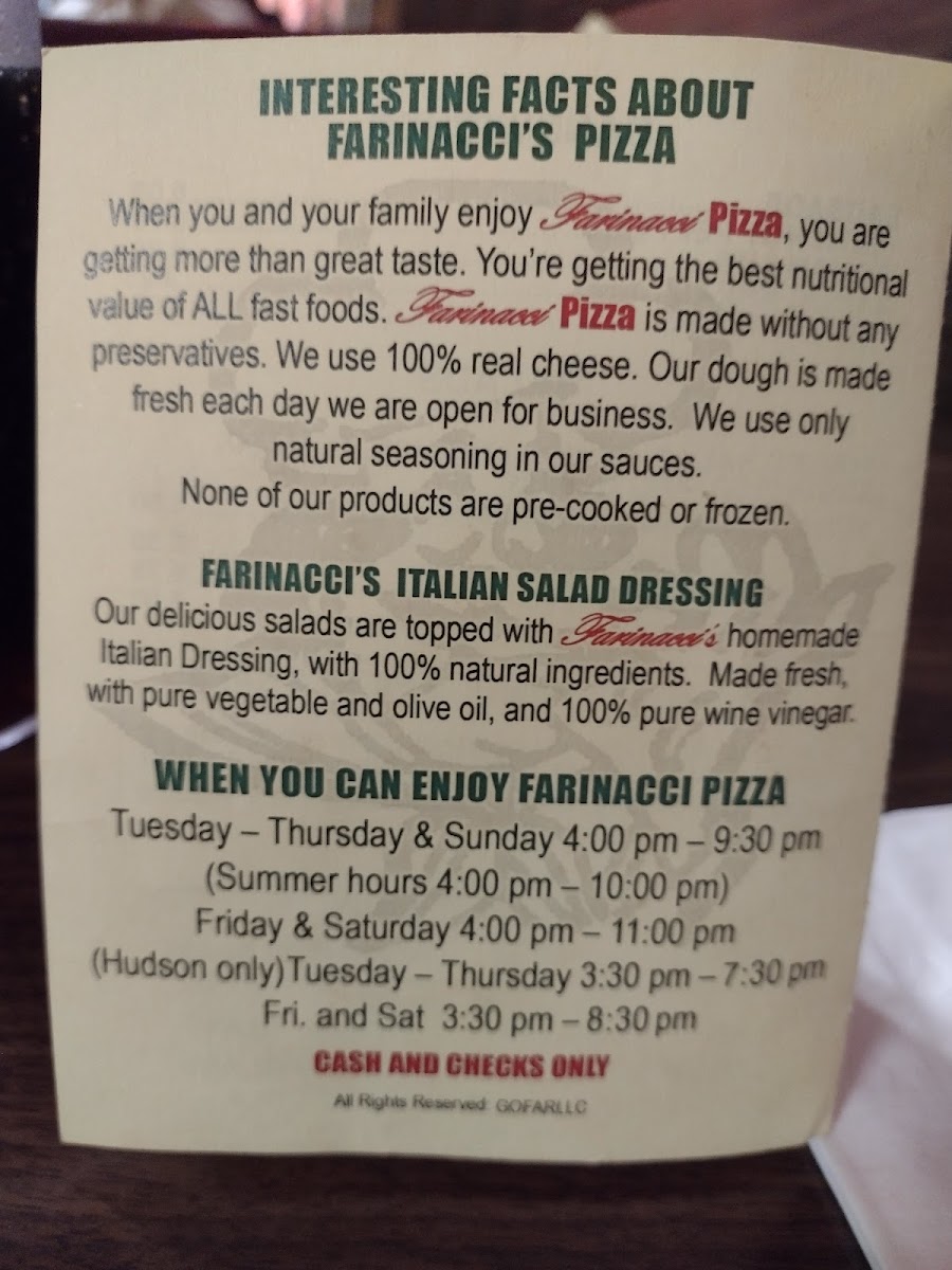 The warm, inviting atmosphere and exceptional service, highlighted by customers’ positive experiences, make Farinacci Pizza not just a meal, but a memorable dining experience. Whether you're dining in or taking out, this local favorite promises comfort and quality with every bite.